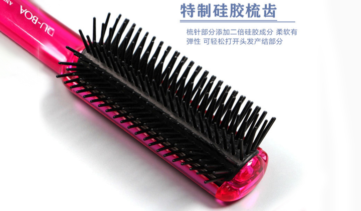 2、特制硅膠梳齒,梳齒部分添加二倍硅膠成分,柔軟有彈性,可輕松打開頭發(fā)打結(jié)部分。
